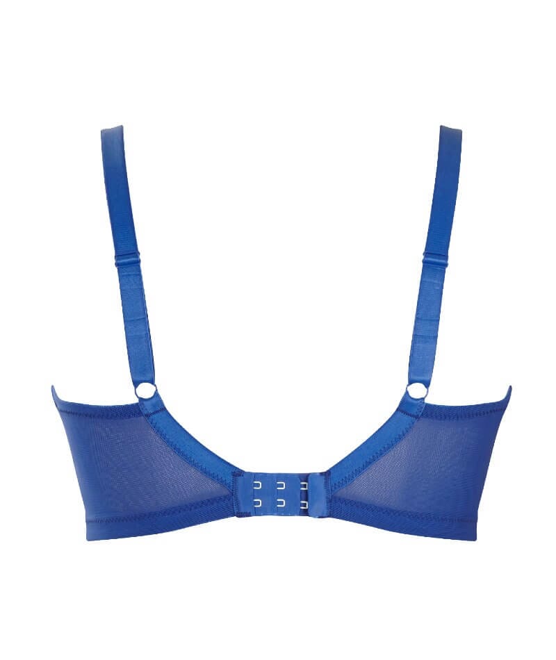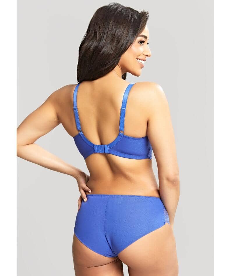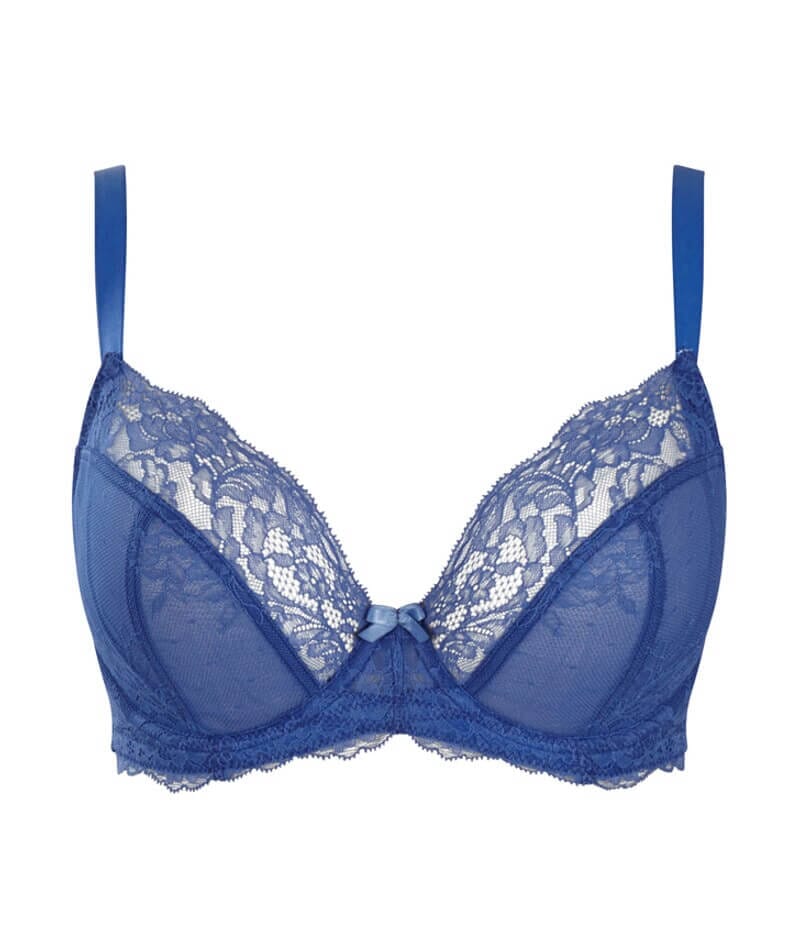 Biustonosz Panache Ana plunge wyposażono w stabilizujące dolne miseczki i elastyczną koronkę oraz wewnętrzny boczny panel, aby zapewnić wsparcie i unieść pełniejszy biust. Konstrukcja oparta na kołysce i zastosowanie tkaniny powermesh to gwarancje solidnego i wygodnego wsparcia aż do miseczki H. Niezwykły kobiecy akcent to satynowa kokardka z koralikami na mostku biustonosza.
