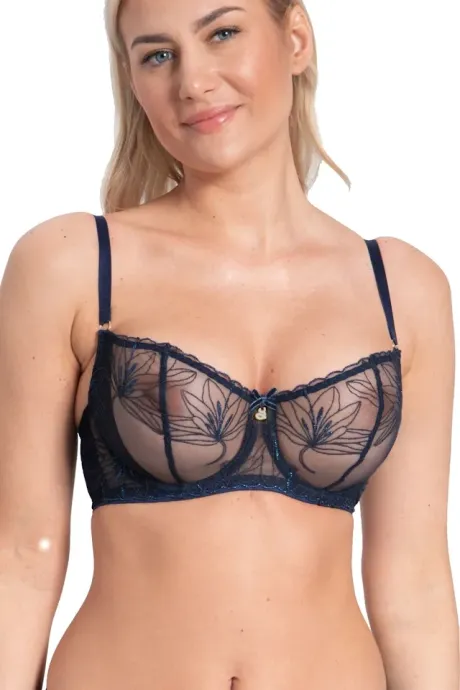 • Obwód biustonosza wykonany jest z tiulu o wysokiej gramaturze. Materiał ten jest bardzo lekki, ale zapewnia stabilność i idealne podtrzymanie piersi. Tiul w motywie florystycznym