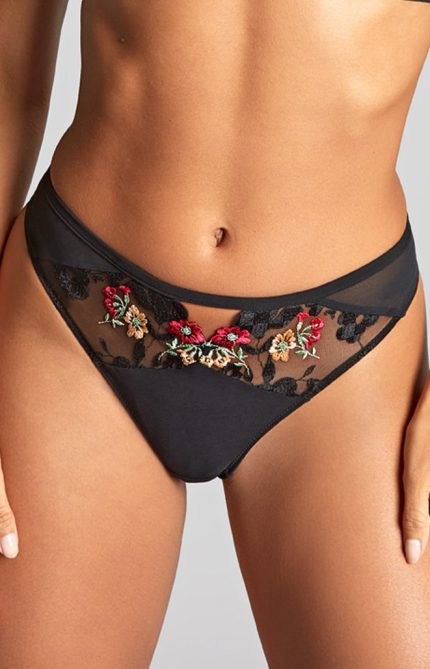 Konstrukcja balkonetkowa z nisko zabudowanym mostkiem i 3-częściową miseczką to idealne zebranie i uniesienie biustu. Fiszbina w kształcie litery V pomiędzy miseczkami podkreśla dekolt.