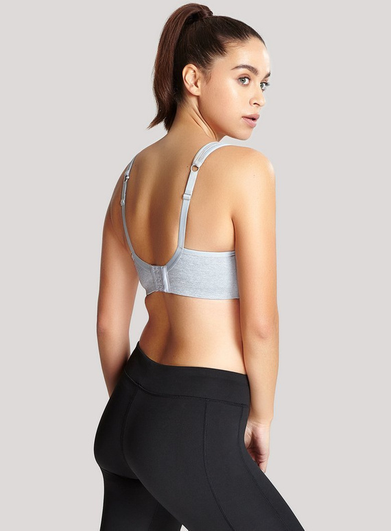 Fiszbiny otoczone silikonem gwarantują idealne podtrzymanie i wygodę. Szerokie, miękko podszywane ramiączka rozkładają nacisk na ramiona w trakcie ćwiczeń. Komfortowe, miękko podszyte i niewyczuwalne w trakcie ćwiczeń zapięcie na haftki.
