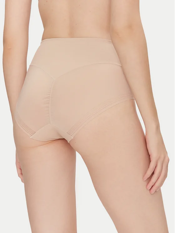 Majtki wyszczuplające z wysokim stanem. Przód wygładzi okolice brzucha, pupę atrakcyjnie modeluje marszczony pionowy szew.