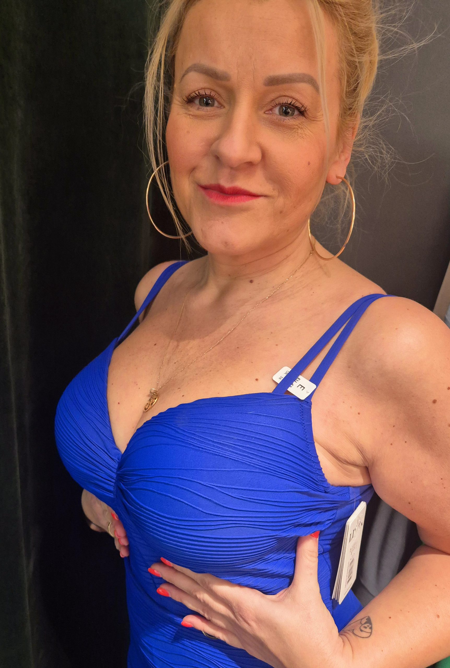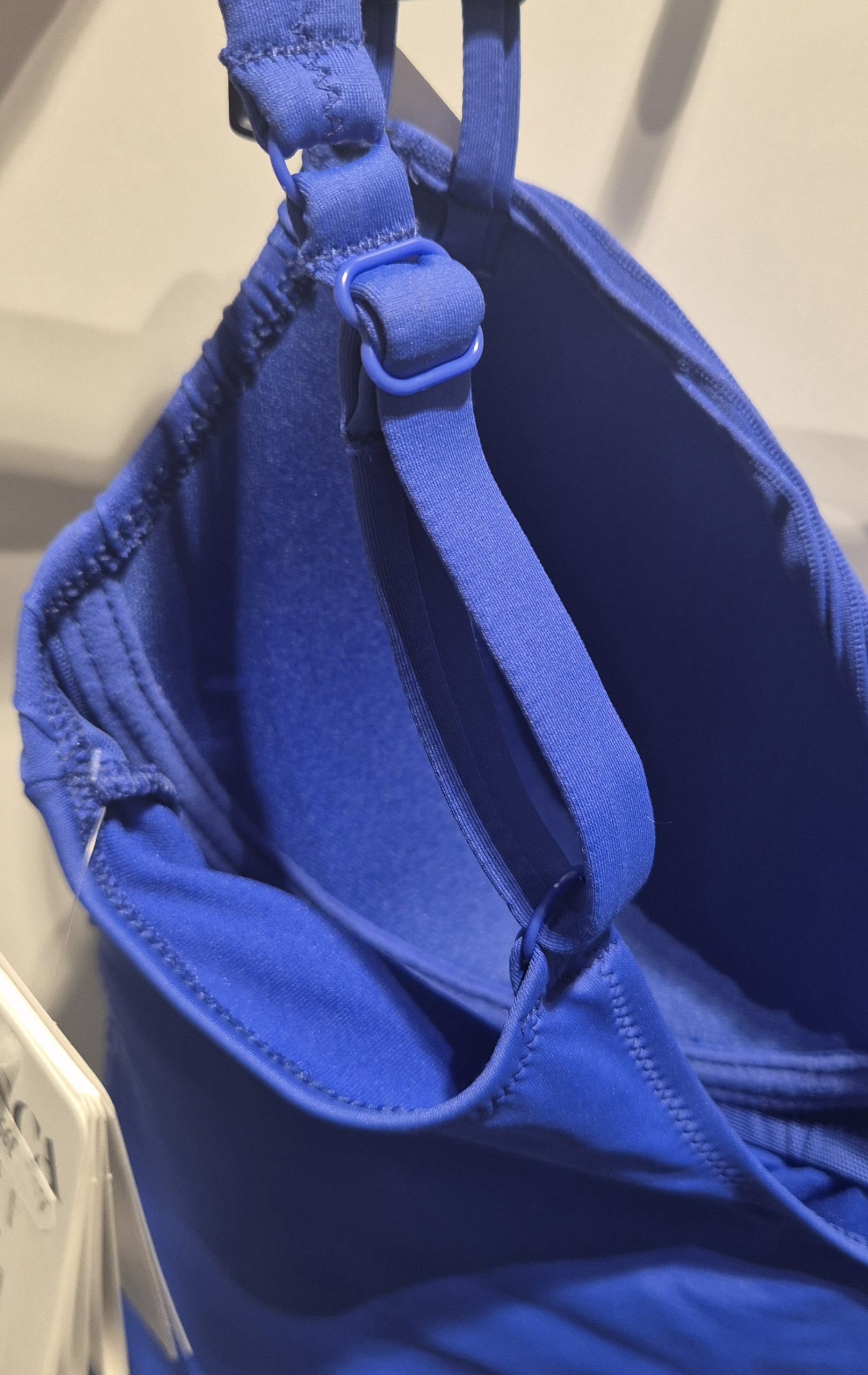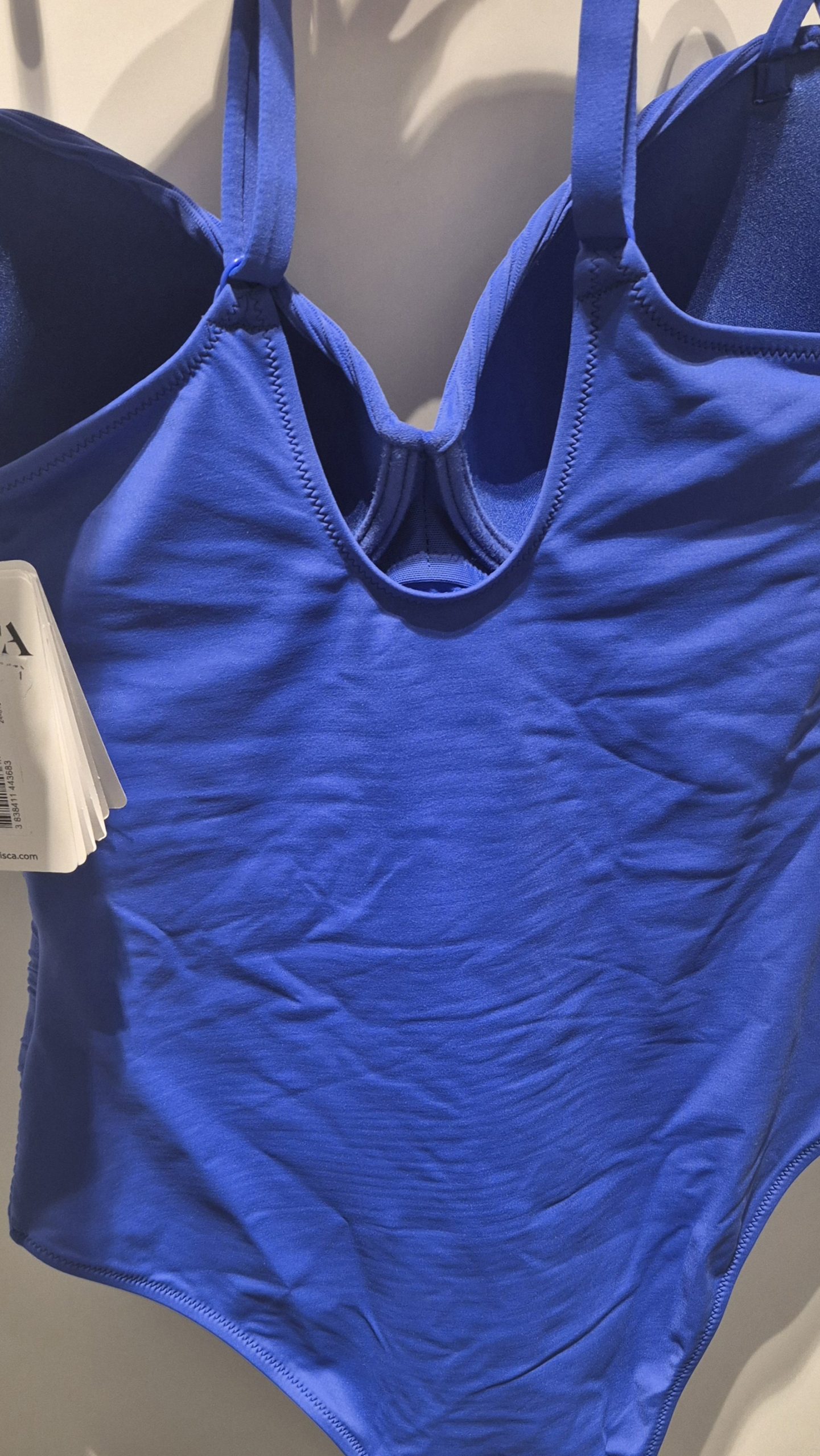 Elegancki jednoczęściowy kostium kąpielowy, w modrakowym kolorze.
